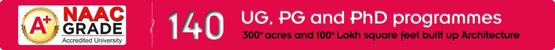 Accredited with an A+ by NAAC, the University is offering more than 140 UG, PG and PhD programmes under fourteen different faculty including Medical, Dental Surgery, Engineering, Humanities and Science, Arts and Commerce, Law, Allied Health Sciences, Physiotherapy, Pharmacy, Nursing, Education, Management Studies, Computer Applications Hotel Management and Centre for Online Programs. The University has the best in class infrastructure spread across 07 campuses with an outstanding land area of 300+ acres and 100+ Lakh square feet built up architecture for teaching, learning and research deliberations. The University has its wings spread across the states of Tamilnadu (Chennai, Adayalampattu, Velapanchavadi, Arni) and Bengaluru.