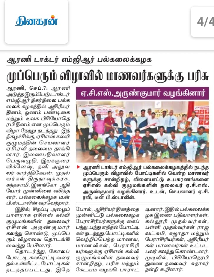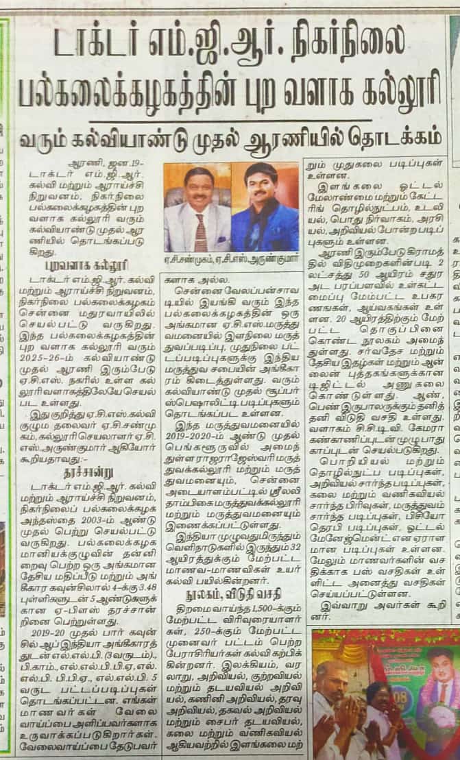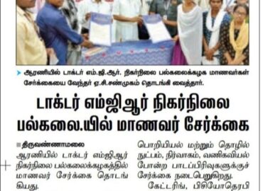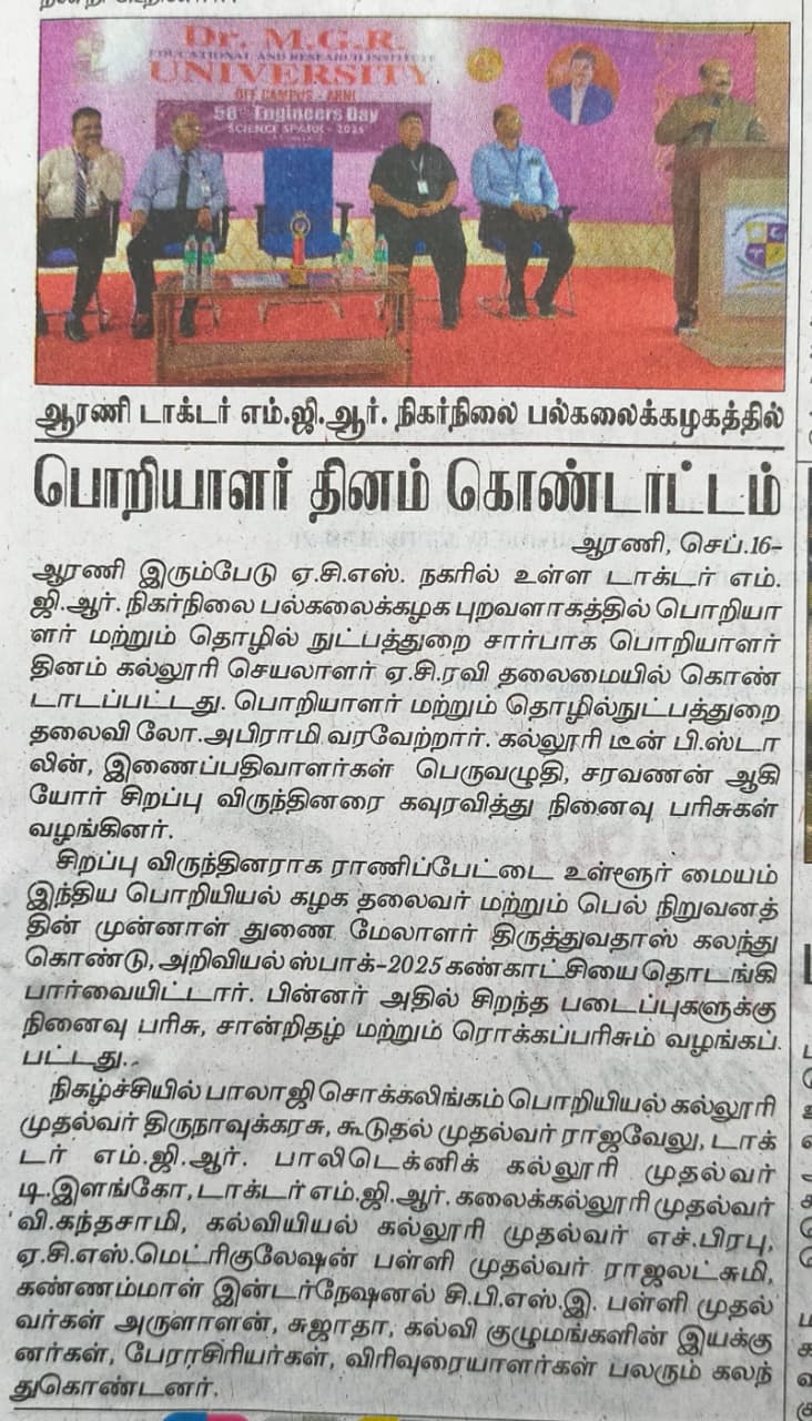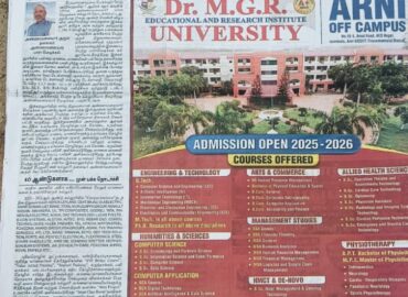 Dr. M.G.R. Engineering College was founded in 1988. We acquired Deemed University status in 2003. Started Off-Campus at ARNI.