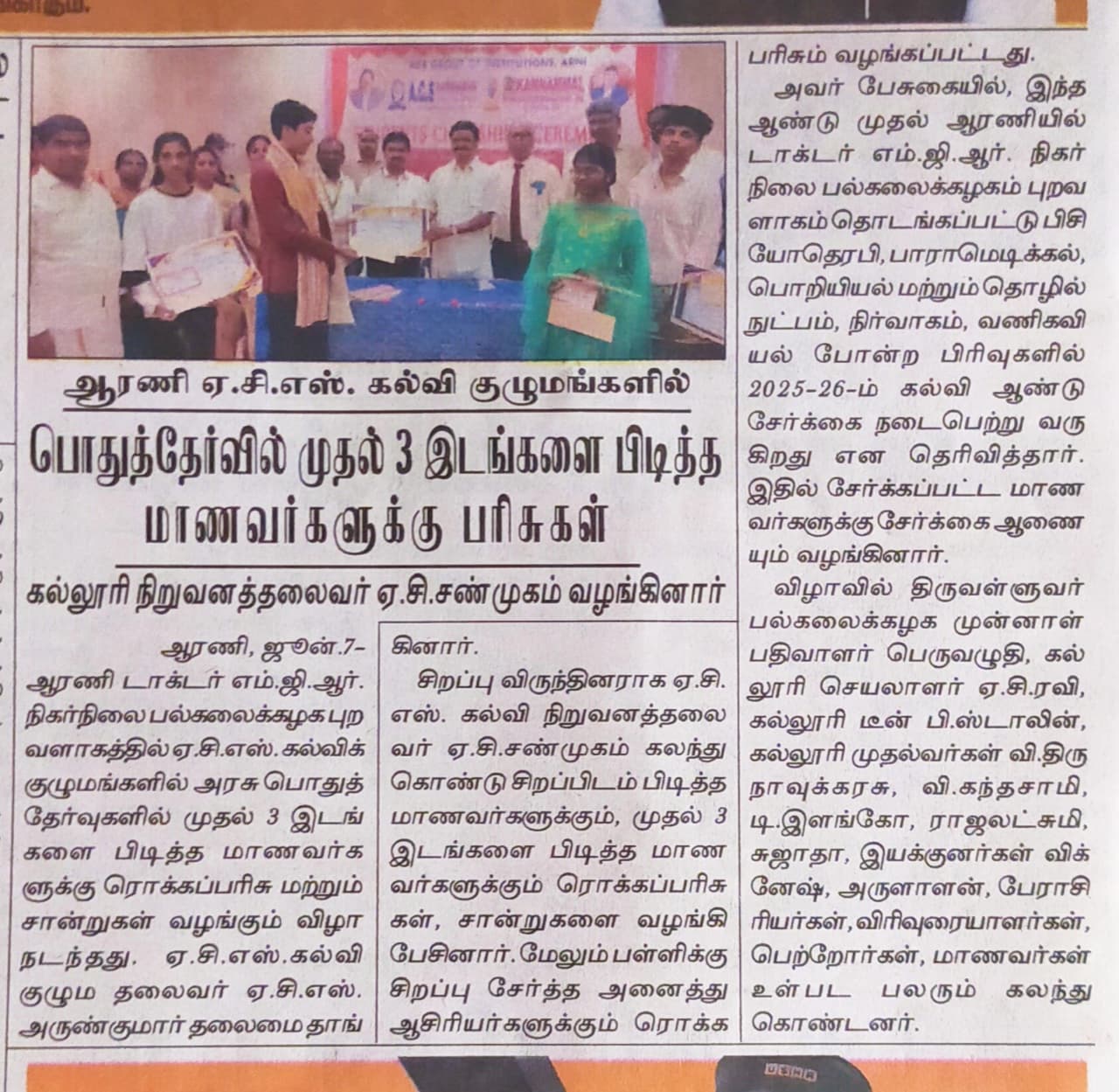 Arcot Road, ACS Nagar, Irumbedu, Arni - 632317