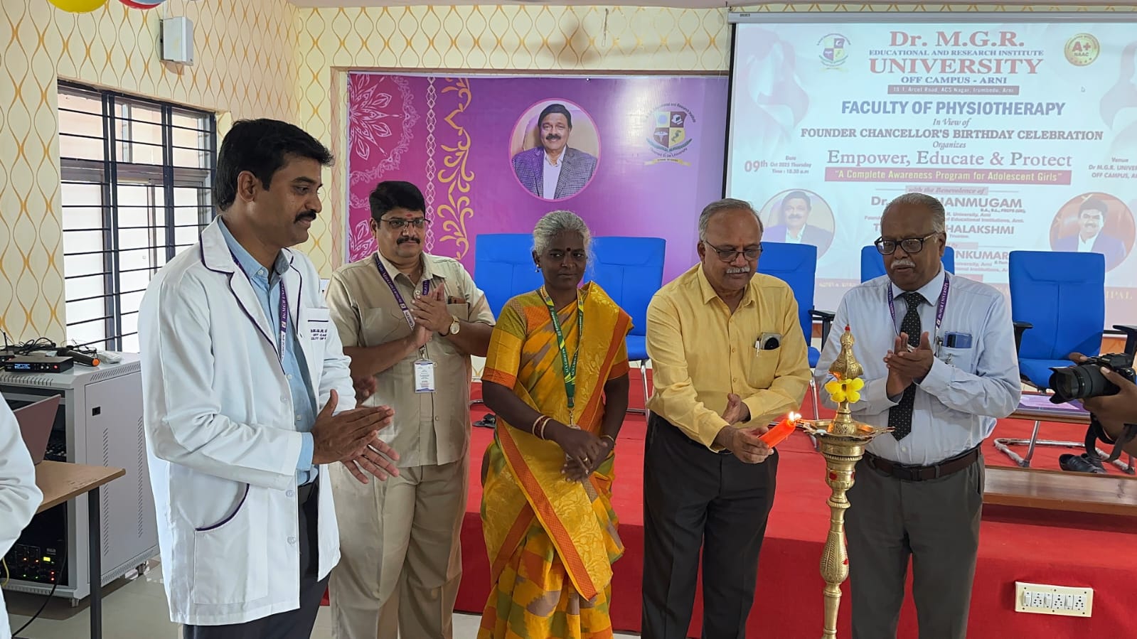 In view of the Chancellor’s Birthday Celebration, the Faculty of Physiotherapy, Dr. M.G.R. Educational and Research Institute, Off-Campus Arni, organized *an Awareness Program for Adolescent Girls on 9th October 2025 (Thursday) from 10.30 a.m. to 12.00 noon. The event, themed “Empower, Educate & Protect: A Complete Awareness Program for Adolescent Girls,” was conducted for students of ACS Matriculation Higher Secondary School and Kannammal International School. Four speakers delivered insightful talks on various aspects related to the theme and MPT students presented an impressive skit.