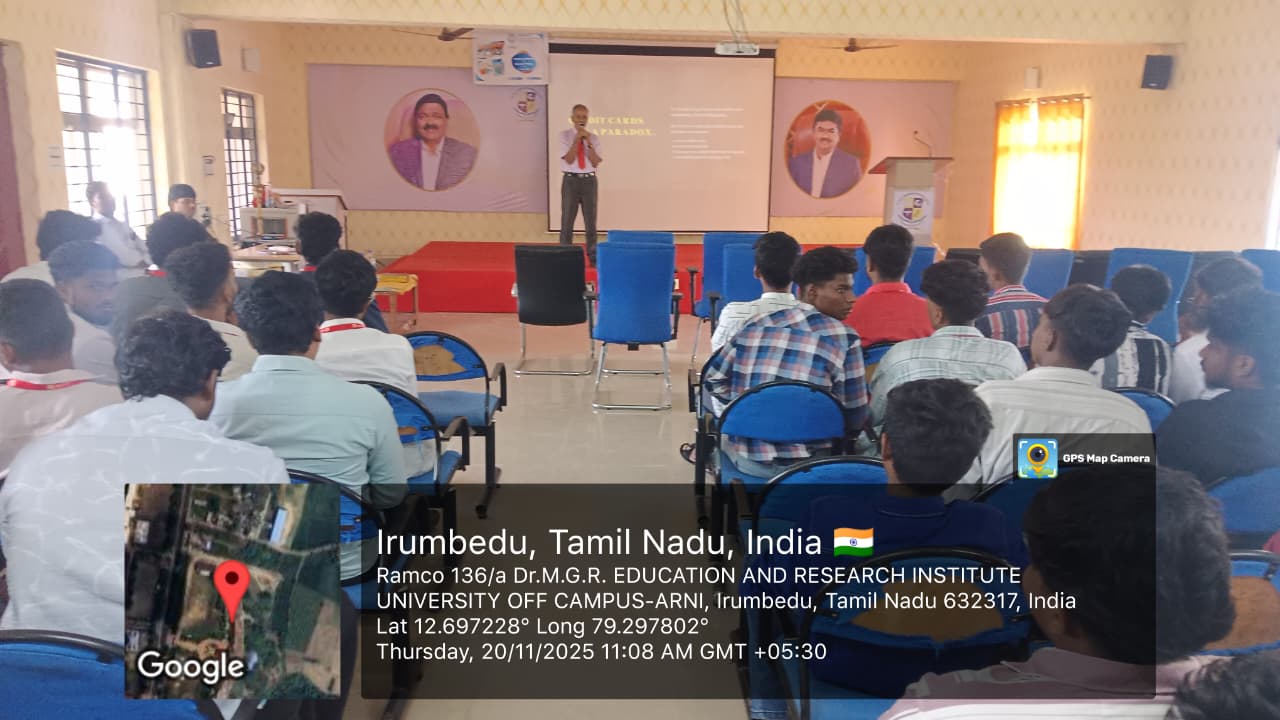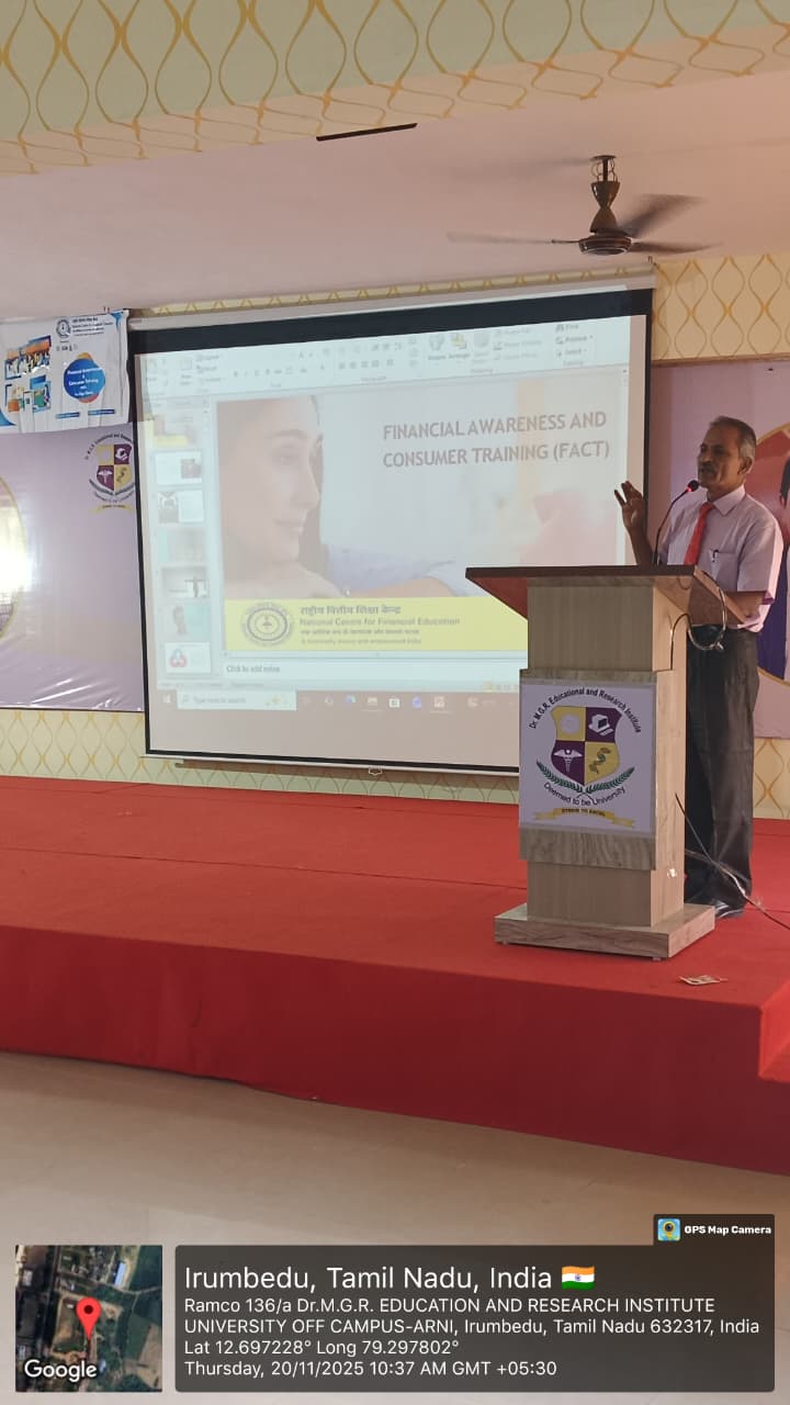 The Department of Arts and Commerce, Dr. M.G.R. Educational and Research Institute, Off Campus – Arni, organized a one day Seminar on Personal Financial Planning on 20th November 2025 (Thursday). The event was conducted at the Auditorium, 2nd Floor, and commenced at 10:00 AM.