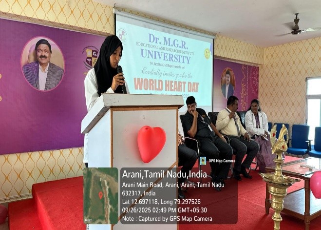 On 26th September, World Heart Day was celebrate by Faculty of Allied Health Sciences, Dr. MGR Educational and Research Institute, Off Campus, Arni, proudly celebrated the occasion with great enthusiasm. As part of the celebration, debate, poster, and expo competitions were organized to create awareness of Heart and showcase the talents of the students.